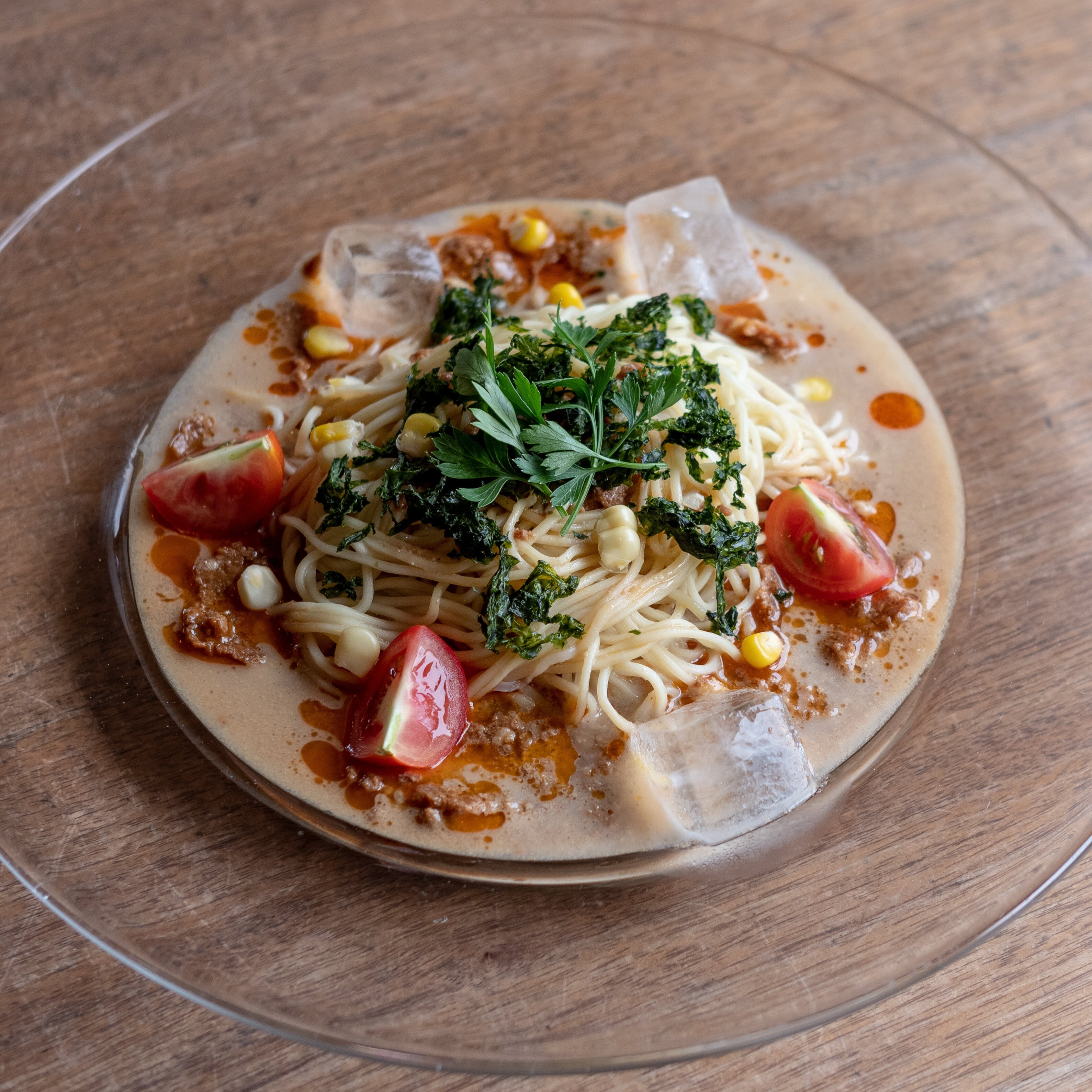 花椒、八角、陳皮など、約十種類のスパイスをブレンドして作ったオリジナルのラー油を加えることによって、豊かな味わいになります。